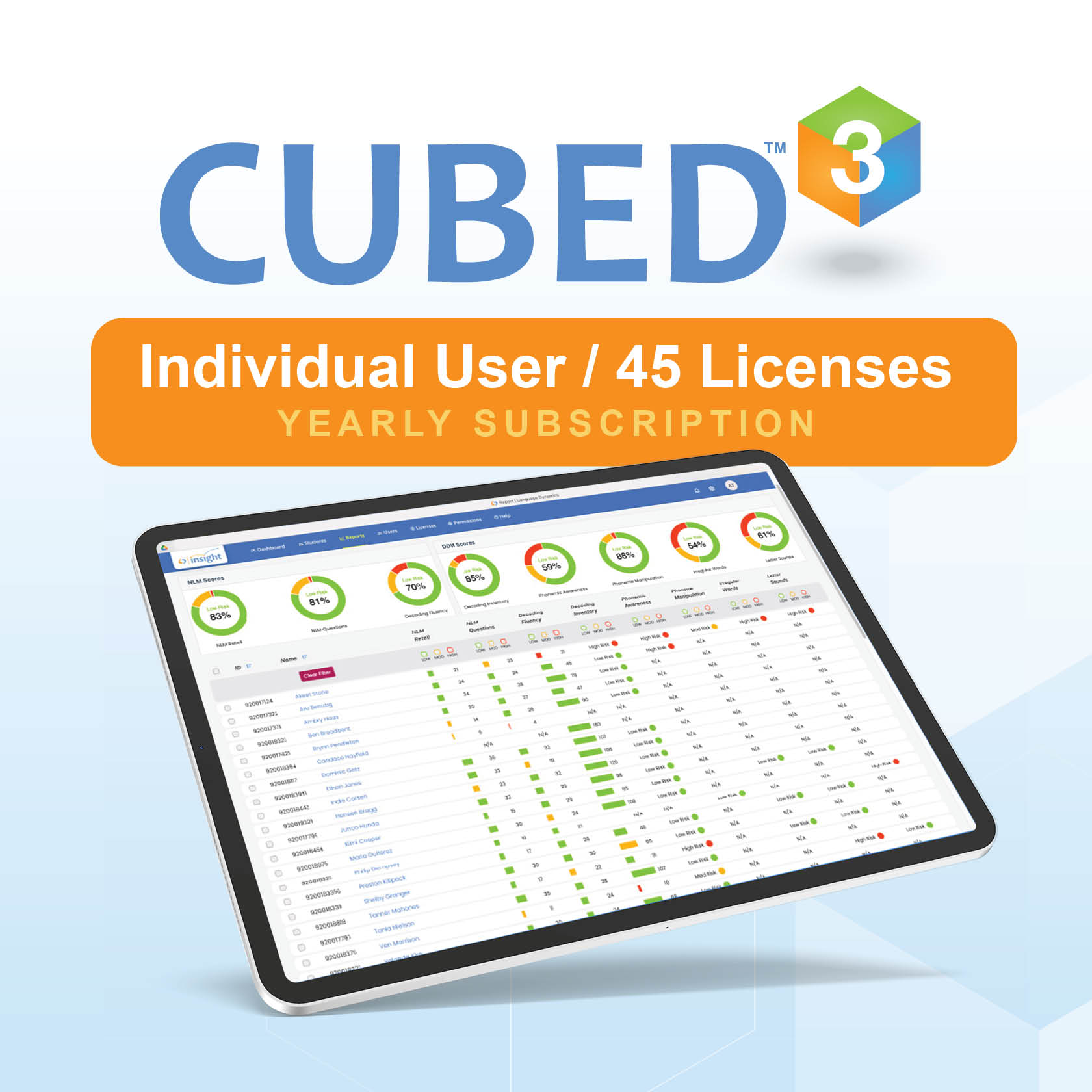 CUBED™-3 Powered by Insight: Individual User Subscription for up to 45 Students (BILLED YEARLY)
